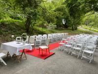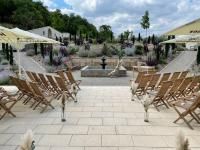 Die Trauung kann im Kaminzimmer, im Gartenbereich oder an der Waldlichtung „Weltgärten“ stattfinden.